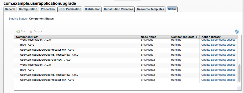 Due to symmetric nature of BPM Nodes (achieved by using 'Product Application' distribution strategy), the BPM User Application com.example.userapplicationupgrade is redistributed on BPMNode2 as well. All the components of the latest version (i.e. 7.0) of this Application have been mapped to BPMNode2 as shown in Figure 3.