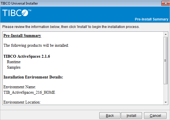 - To use an existing TIBCO_HOME directory, leave the checkbox for Use an existing TIBCO_HOME checked. If you want to install in another directory, check the Create a new TIBCO_HOME check box and specify a new TIBCO_HOME directory.
