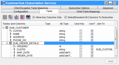 Figure 305: Subscription Service: Table Tab—Add Child Table