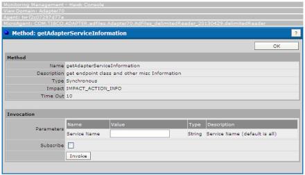 The following figure shows the Method dialog for the getAdapterServiceInstance method of an adapter microagent: