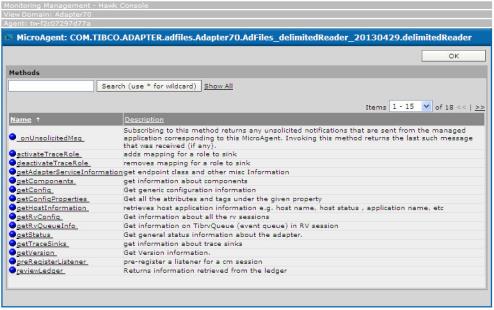 The following figure shows the available methods of an adapter microagent displayed in the Microagent dialog from the Hawk console: