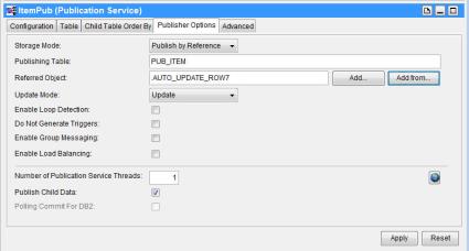 Figure 153: Configuring the Publisher Options to a Publisher Adapter