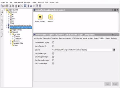 File to which logging information is written. The default log file name for the adapter is Global variables can be used to specify the location of the log file. See Working with Global Variables at Design Time for more information. |