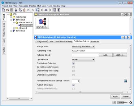 With Publish by Reference, only key column values are copied to the publishing table. You can use this option to publish data directly from the source table without copying the data from the source table to a publishing table firstly. A trigger, a stored procedure, and a publishing table are created, but the publishing table contains the necessary adapter fields and only the key fields of the source table.