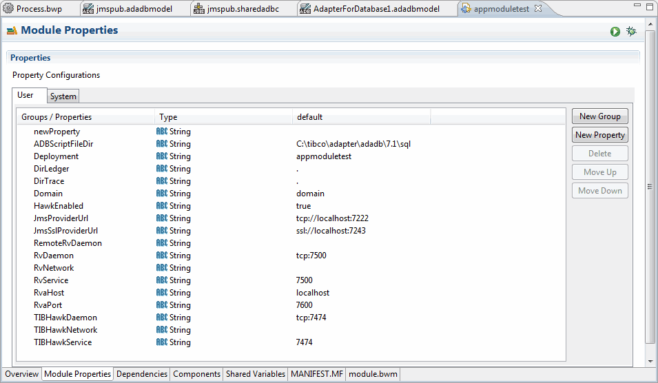 You can add, specify, and group module properties by using the Module Properties editor in TIBCO Business Studio.