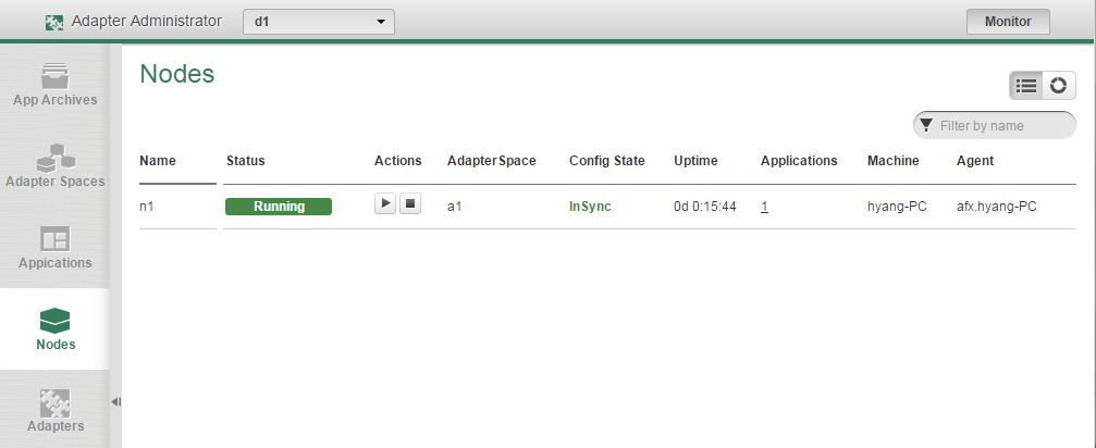 - Click Monitor in the upper-right corner of page to check the state of runtime entities.