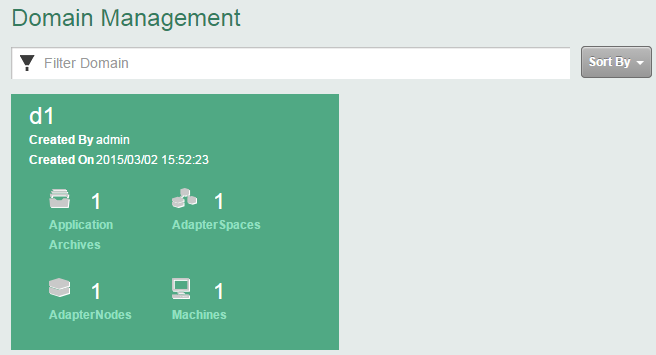 - Click Adapters in the Products area to view the created entities. On the Domain Management page, you can get the general information about a domain.