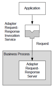 The following figure illustrates an Adapter Request-Response Server activity starting a business process to handle an incoming request from Request-Response Invocation Service. In the business process, the Respond to Adapter Request activity is used to perform the response at a later point.