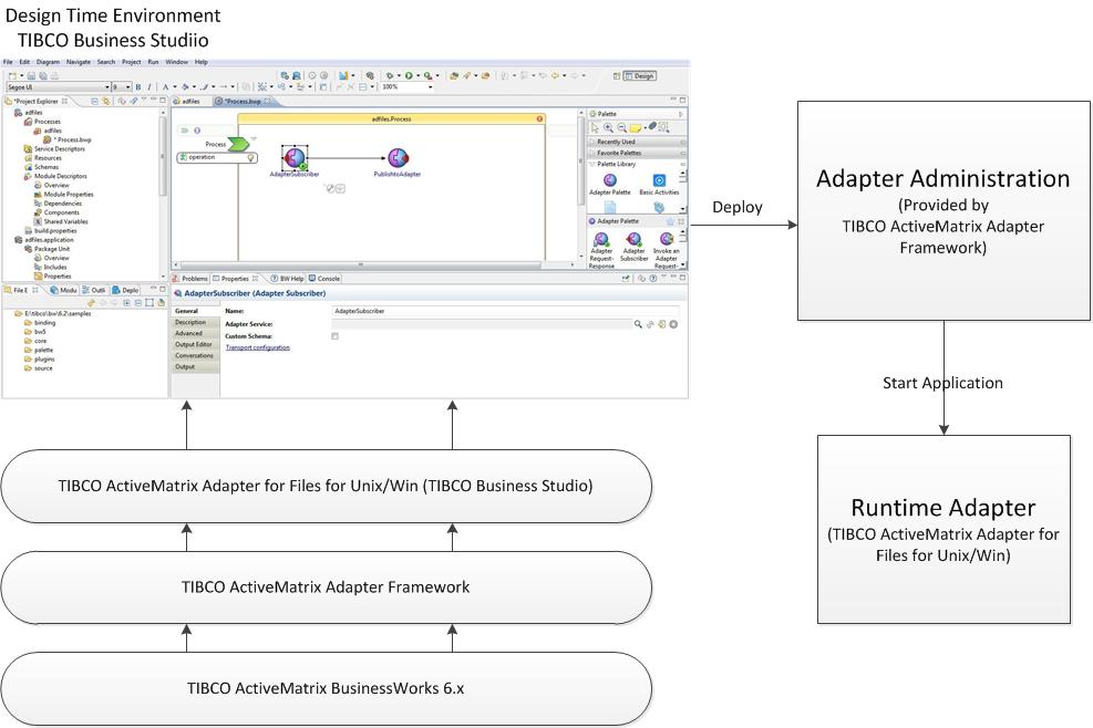 - TIBCO ActiveMatrix® Adapter Framework works as a bridge between TIBCO ActiveMatrix Adapter for Files for Unix/Win (TIBCO Business Studio) and TIBCO ActiveMatrix BusinessWorks 6.x. TIBCO ActiveMatrix Adapter Framework provides the development environment for configuring supported TIBCO adapters in TIBCO Business Studio and working with TIBCO ActiveMatrix BusinessWorks™ 6 applications and processes. It also provides the following components: