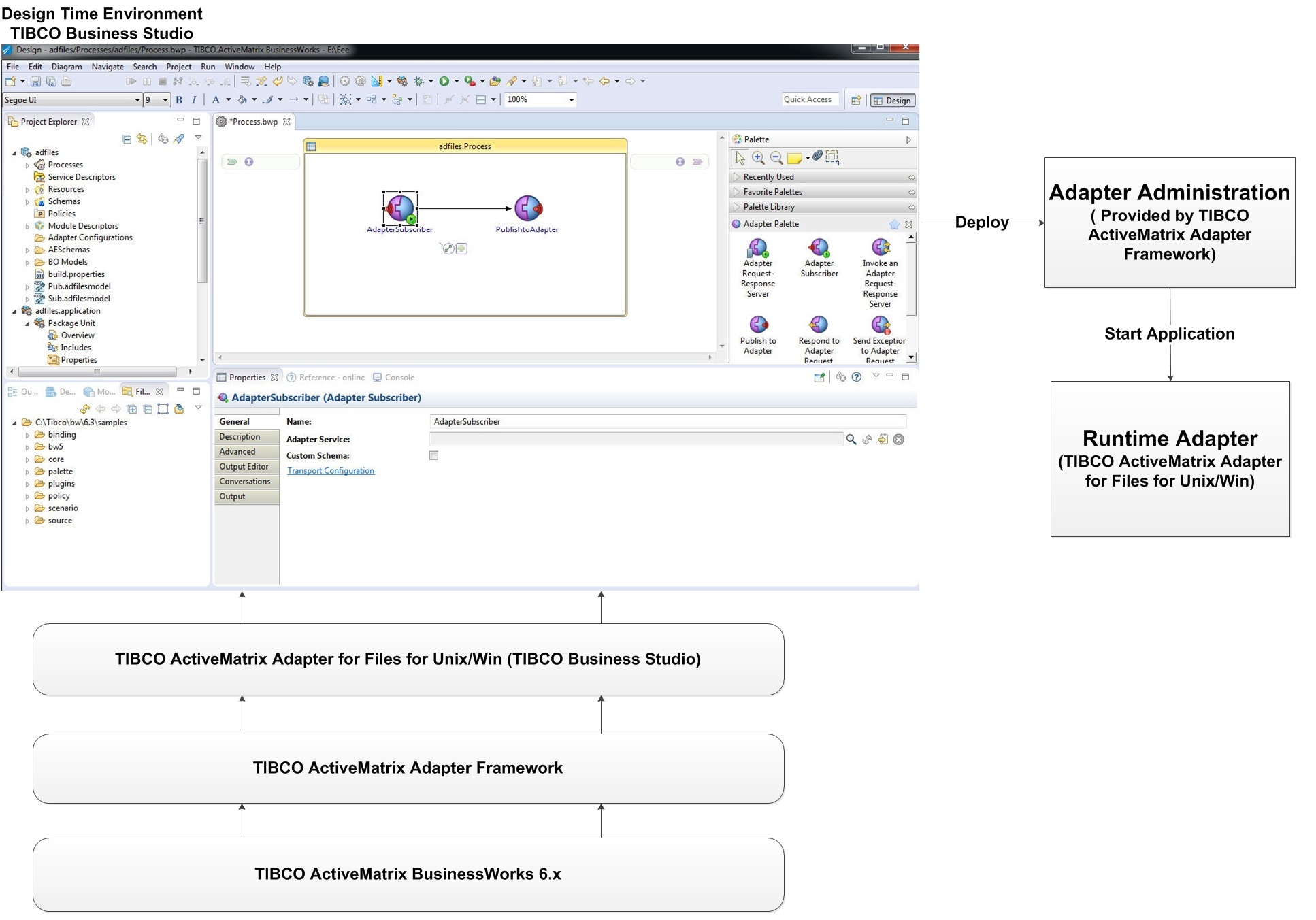 - TIBCO ActiveMatrix Adapter Framework works as a bridge between TIBCO ActiveMatrix Adapter for Files for Unix/Win (TIBCO Business Studio) and TIBCO ActiveMatrix BusinessWorks 6.x. TIBCO ActiveMatrix Adapter Framework provides the development environment for configuring supported TIBCO adapters in TIBCO Business Studio and working with TIBCO ActiveMatrix BusinessWorks 6 applications and processes. It also provides the following components: