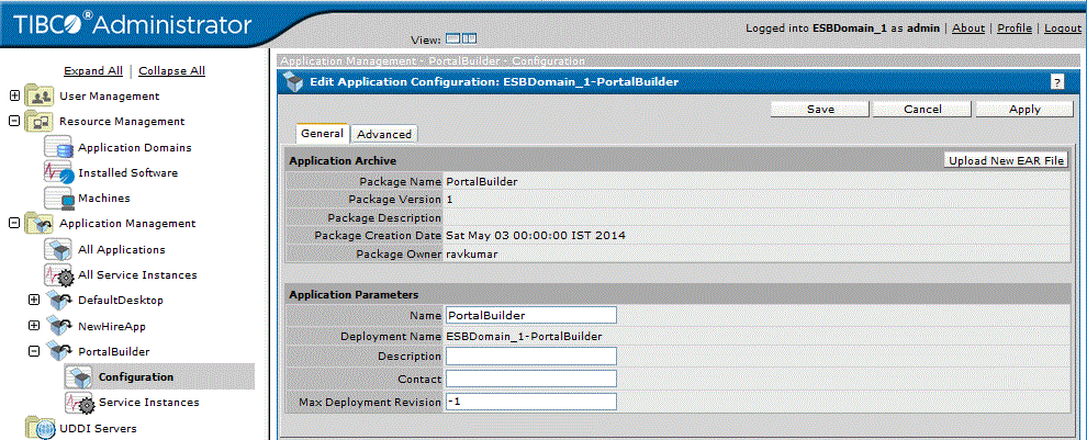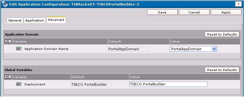 4. In the Edit Application Configuration panel, click the Advanced tab.Figure 30 Advanced Tab