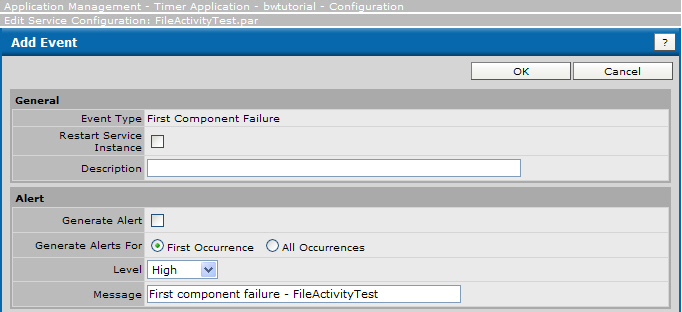 In the General pane, select First Component Failure in the Event Type dropdown list.
