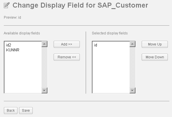 Note: If an entity only has only one key field defined, the field is selected as the display field by default and cannot be removed.