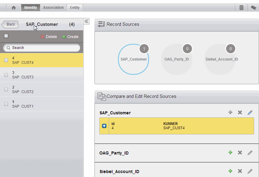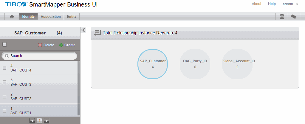 With SmartMapper Business UI, you can search, create, delete, and update relationship instances of an identity relationship.