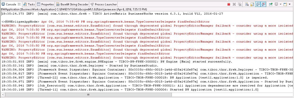 2. Click BusinessWorks Application > BWApplication in the left panel.