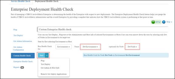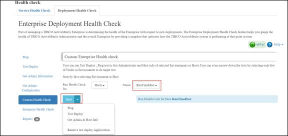 Using Custom Health Check, you can run Test Deploy, Ping or Get Administrator and Host information for the environment or host that you select. You can even narrow down the tests by selecting only few of nodes in the environment.