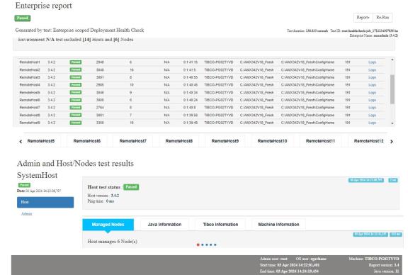 The following image displays report for Enterprise Health Check test. You can view report for each health check test by using sliding arrows: