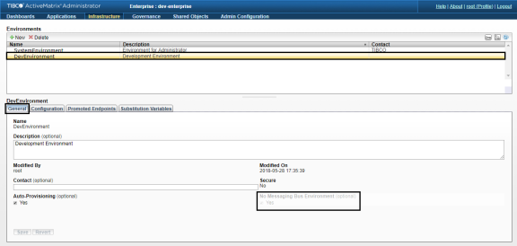 - In ActiveMatrix Administrator, select Infrastructure > Environments.