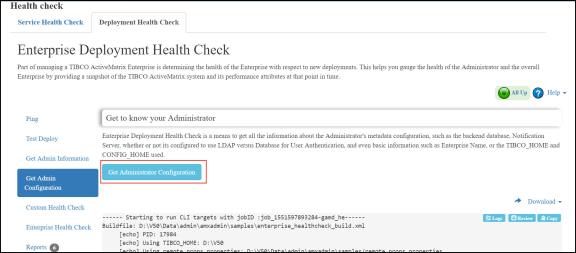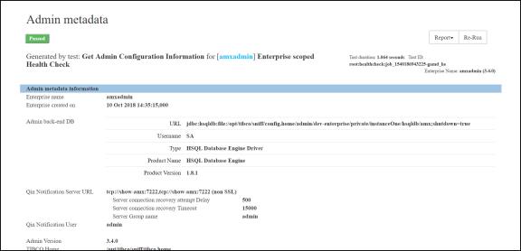 Click the Get Administrator Configuration button for information about configuration (Metadata) of TIBCO ActiveMatrix Administrator. When the execution of test is completed, you can view the report by clicking the Review button as shown in the following image.