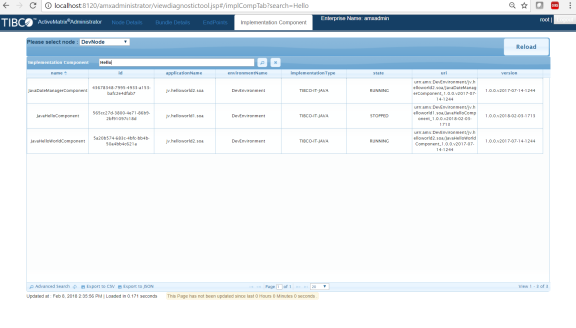 Implementation Component tab, search for the specific application, and check the status.
