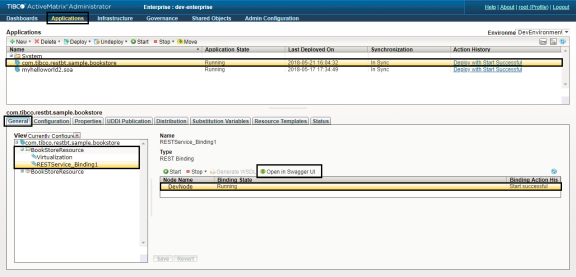 com.tibco.restbt.sample.bookstorefrom the list of Applications. - Click the General tab.