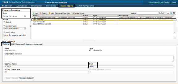 Connector Name to find out the port number of the HTTP Connector as follows: