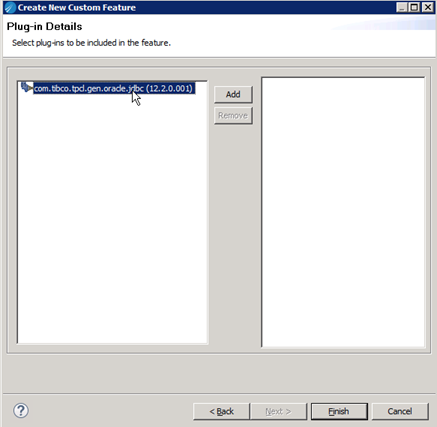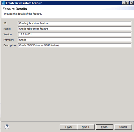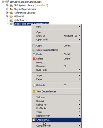 In these steps, you are going to wrap JDBC OSGI plug-in (that is generated by using TCT) as custom feature. Once you have custom feature, you can easily export that as DAA.