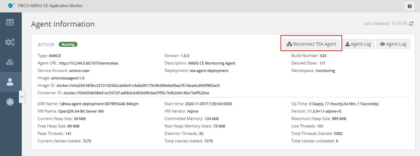 - Click Reconnect TEA Agent. The status of nodes and entities running on the nodes is re-emitted.