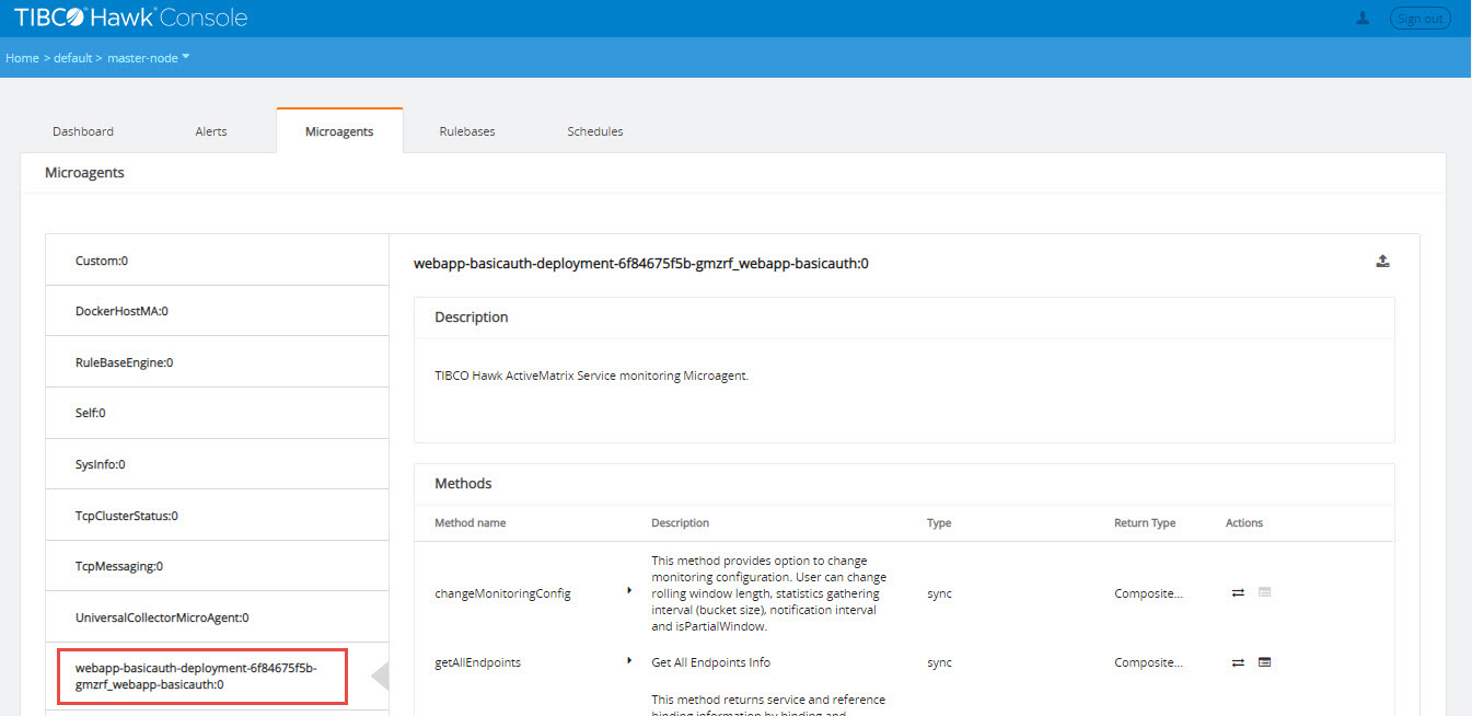 <HostName>_<AMXCE Node Name>. Here<HostName>is a combination of Kubernetes deployment name and container id. This microagent provides methods for monitoring ActiveMatrix Service Grid - Container Edition applications.