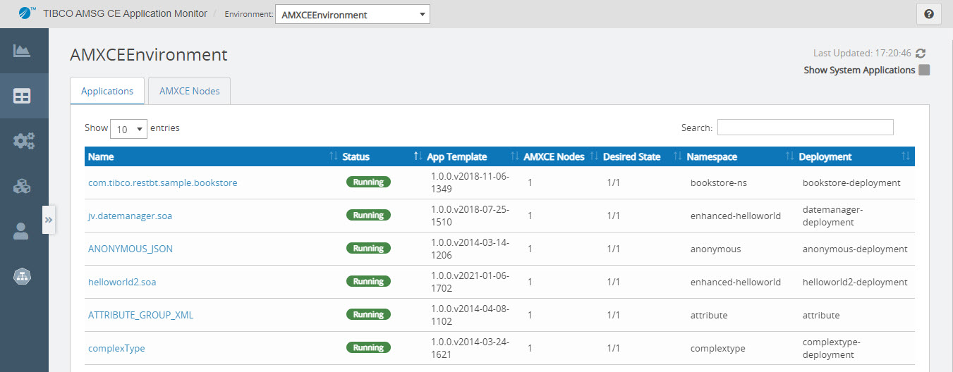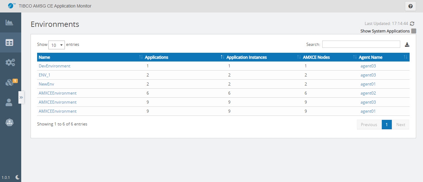 To view the system applications, select the Show System Applications check box in the upper-right corner of the Environments page. The Show System Applications check box is available on Dashboard, Environments, and Applications page. If you select or clear the check box on one of the pages, it gets enabled or disabled on all three pages.