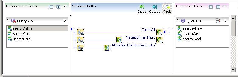 In the above example Catch fault task, one fault message is defined on the target operation named searchAirline_faultMsg. The Catch Fault task also has the following faults listed for all target operations: