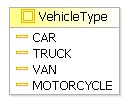 - In the same manner, add three more enumeration literals, one called TRUCK, another called VAN, and a third called MOTORCYCLE.