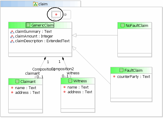 - Click once on the GenericClaim class to select it. The buttons for adding an attribute or operation will pop up. Click the red button to add an attribute.