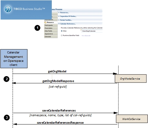 A calendar reference is created in TIBCO Business Studio and is then assigned, either by a user using the Calendar gadget in Openspace or by a program using the APIs directly, to a calendar.