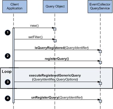 - It uses isQueryRegistered to determine if the query is already registered, and if not, it calls the registerQuery operation to register the query, using the defined query object. Event Collector parses and stores the query for later use.