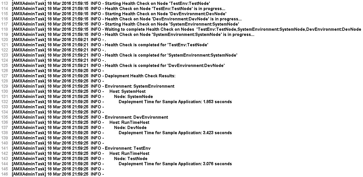 Deployment time on each Node varies based on how busy the particular Node is, how busy the Host managing that Node is, as well as how busy the Machine (on which the Node is running) is. If an Environment has many Nodes and if they are going through parallel Test Deployments simultaneously, some of the tasks that are part of the parallel Test Deployment that are sequential in the TIBCO ActiveMatrix Administrator, can skew the Test Deployment timings, but not by a huge margin.