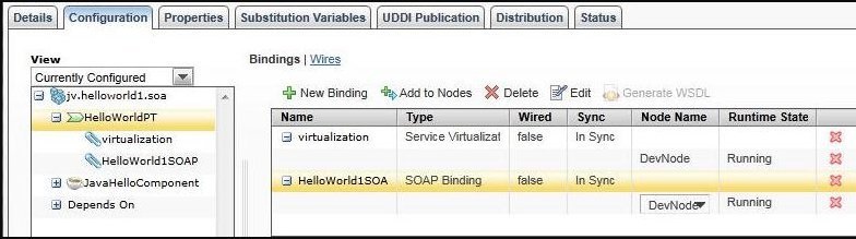 You can display the bindings for a service or reference from an application's Configuration tab.