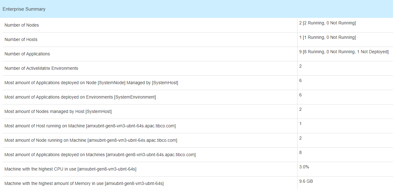 - Number of ActiveMatrix Environments: Total number of ActiveMatrix Environments.
