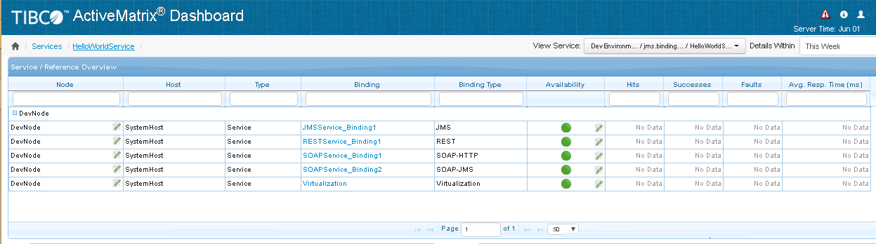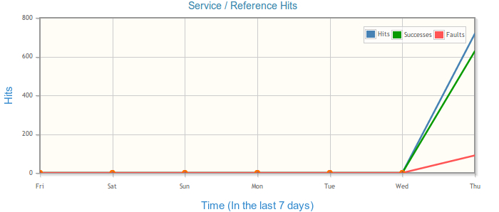 This number includes hits to the service and to internal services if a virtual binding is used between TIBCO ActiveMatrix components. |