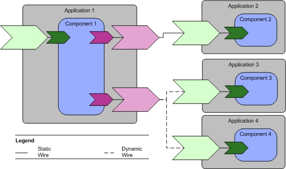 The connection between a service and a reference is called a wire. A wire can be static or dynamic