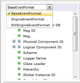 - Event Model control Contains an event model selector and a tree of the attributes available for each type of event model.