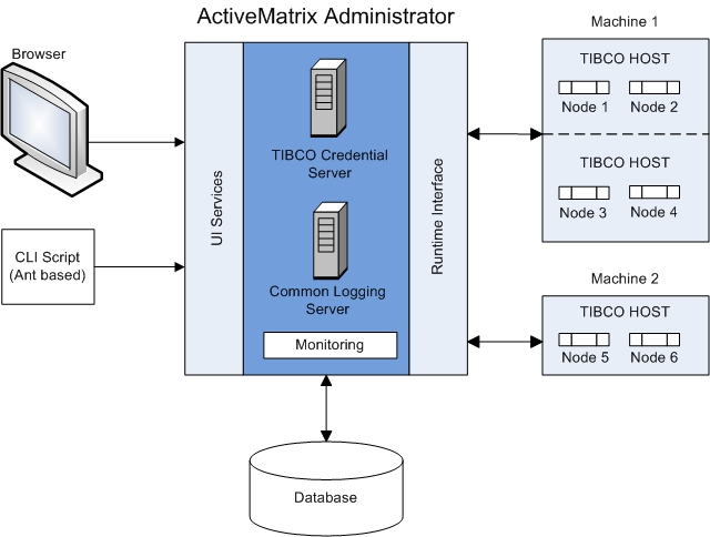 TIBCO ActiveMatrix Administrator provides a UI interface and runtime interface.