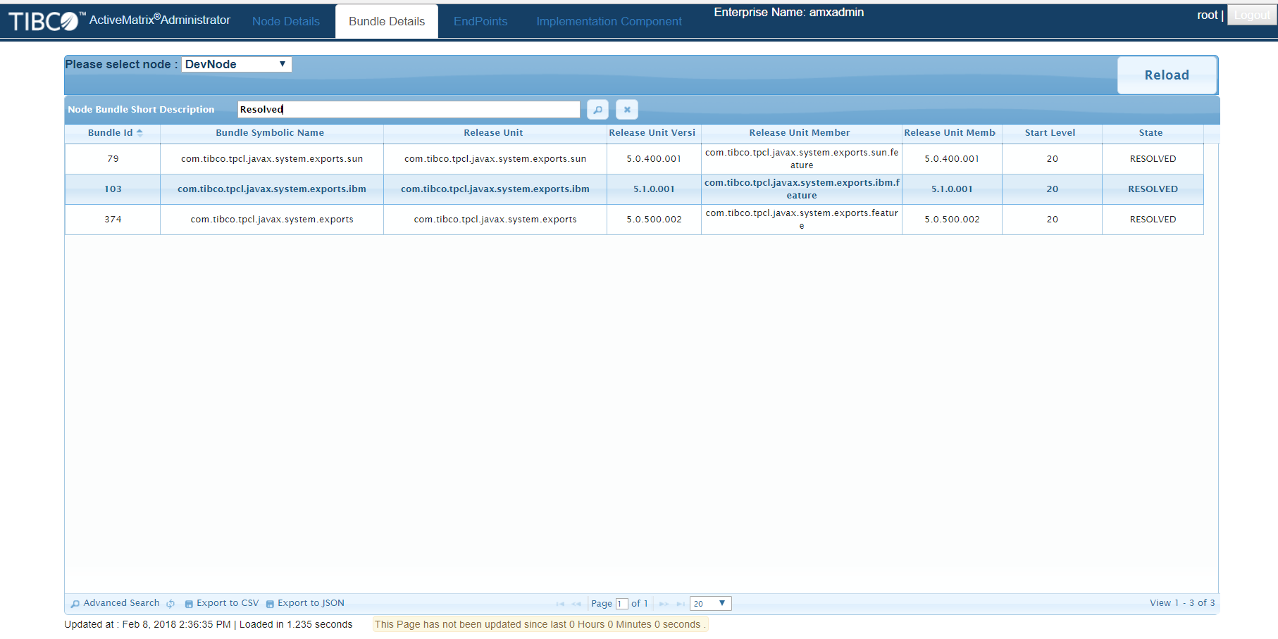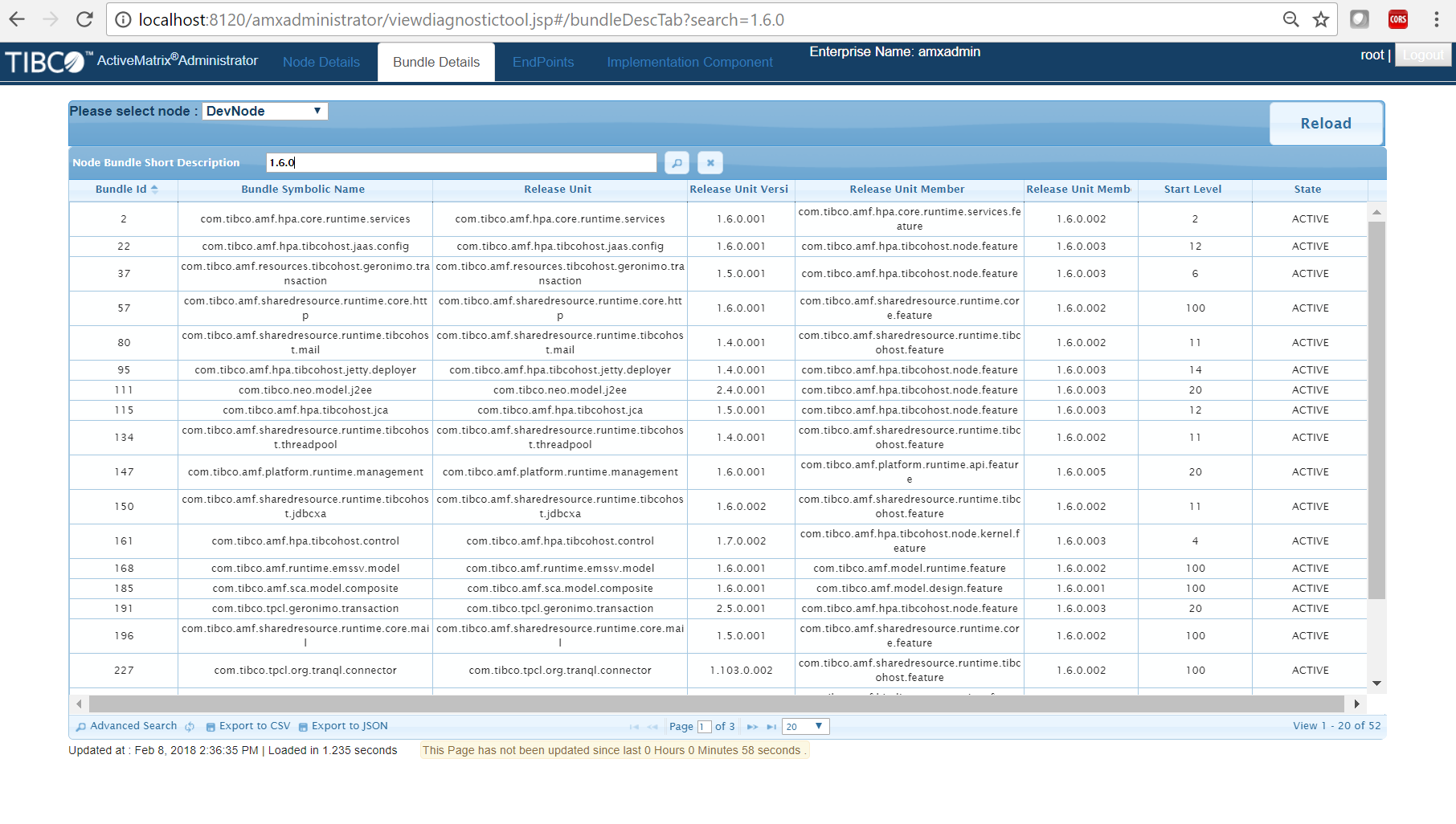 - Access the OSGi Diagnostic tool by selecting Infrastructure > Diagnostic Tool.