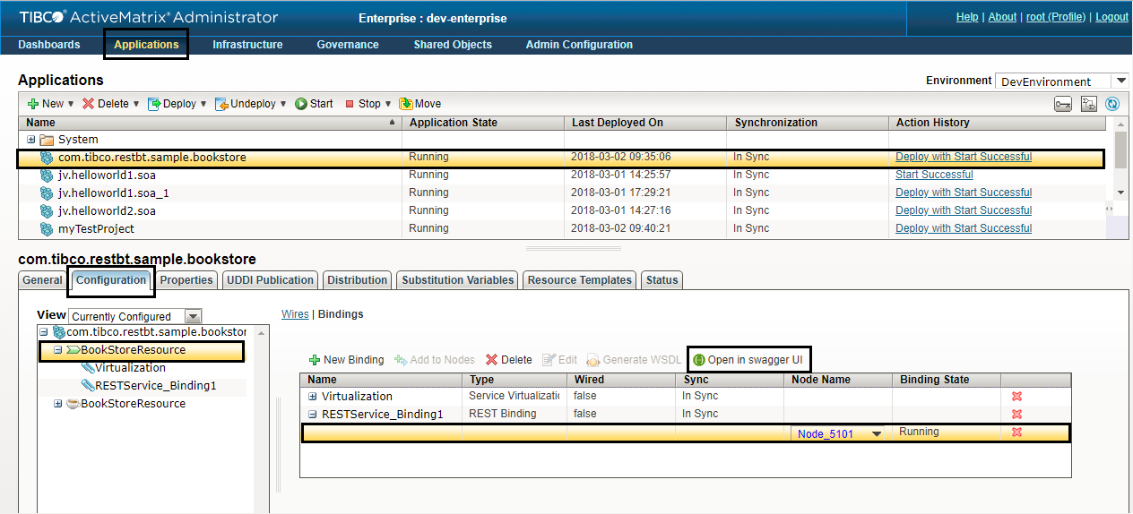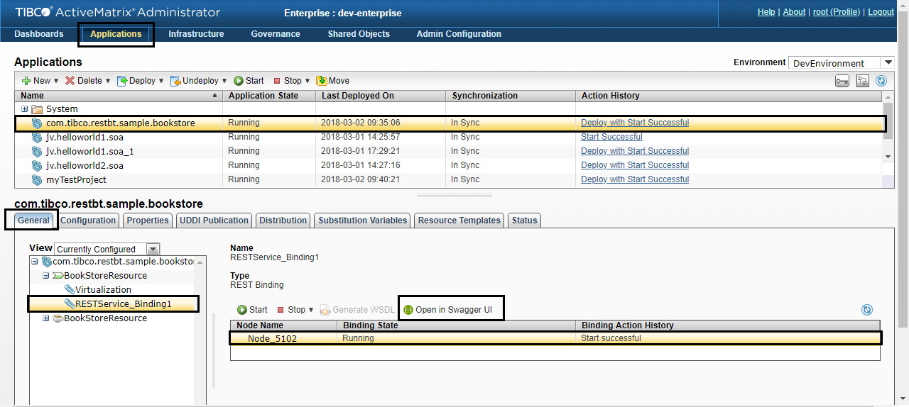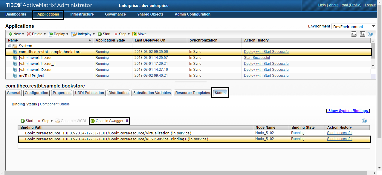 - In the ActiveMatrix Administrator UI, click Applications. A list of all the Applications is displayed.