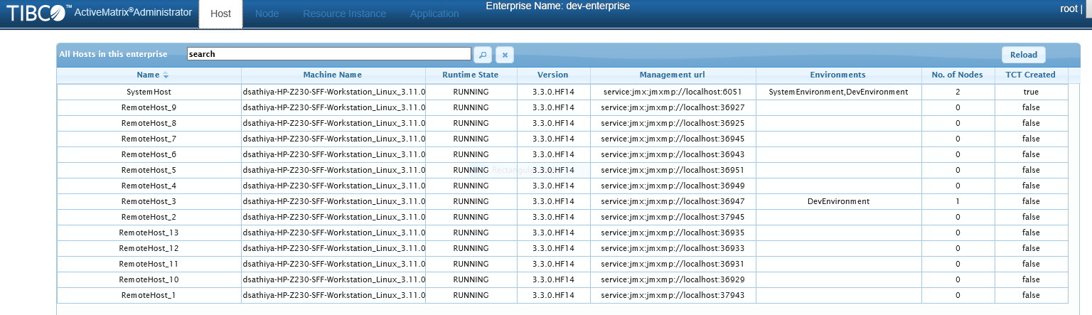 - Consider a TIBCO ActiveMatrix Enterprise with 13 Hosts, as shown below. To access this view, go to the URL: http://<host>:<port>/amxadministrator/viewstatus.jsp.