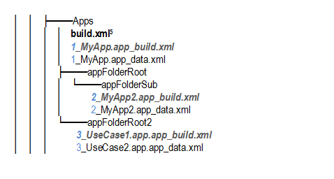 In the following example exported folder, under sub folder "Apps", some *_build.xml file exist but they all start with a number. This is the order in which the application is created. In the following example, first "1_MyApp.app_build.xml" is created, then "2_MyApp2.app_build.xml", and then "3_UseCase1.app.app_build.xml" is created.
