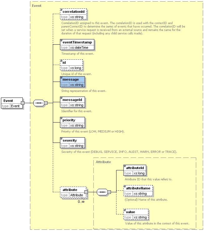 <Event> <correlationId>8F534823-F097-4106-86ED-A6F423731579</correlationId> <eventTimestamp>2009-10-02T09:38:28.220+01:00</eventTimestamp> <messageId>SAMPLE_MESSAGE_ID</messageId> <message>Test message</message> <severity>INFO</severity> <priority>Medium</priority> </Event>