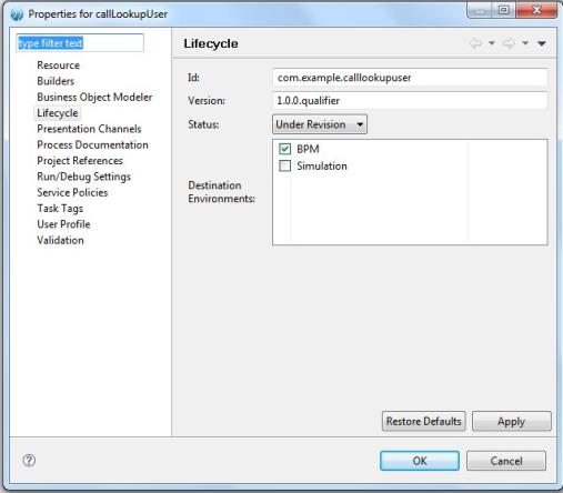The BOM package name must differ from the TIBCO Business Studio project lifecycle ID, which is also a dot-separated name in the same format. The project lifecycle ID can be viewed by right-clicking on the Project and selecting .
