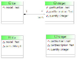 - In the first example, there is a line drawn between the Car and Widgets, which is labeled "parts".