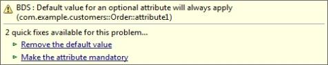 If you attempt to set a default on an optional attribute, for example, one with a potential multiplicity of zero, the following warning is generated: